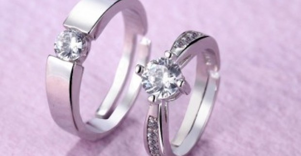 Elegantný prsteň z bižutérneho kovu v striebornej farbe s kamienkmi - 2 ks.