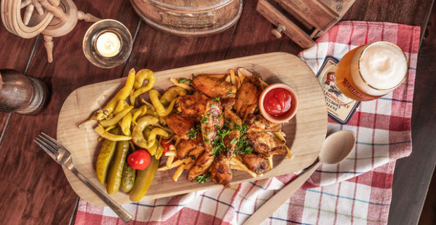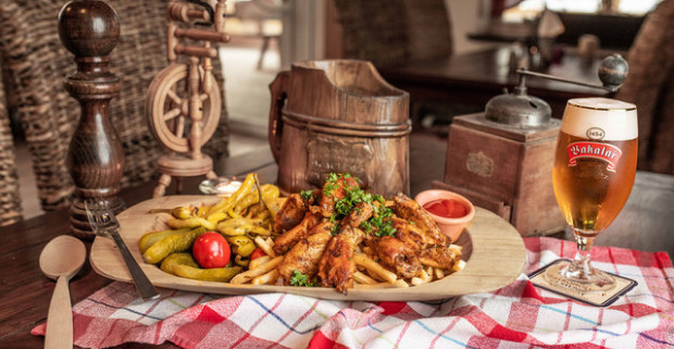 Krídelká alebo pečené bravčové koleno a 0,5 l čapované pivo…