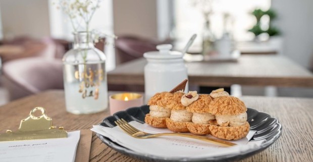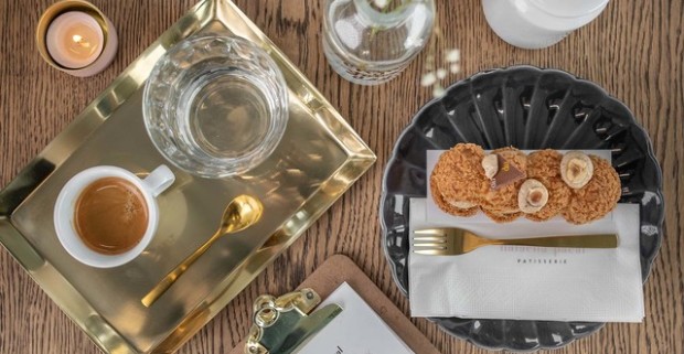 Káva a koláč podľa francúzskej receptúry v Natacha Pacal Patisserie.