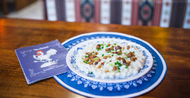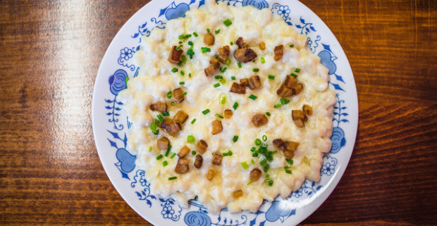 Bryndzové halušky so slaninkou alebo strapačky s kyslou kapustou a slaninkou.
