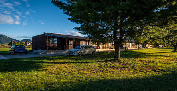Chatka s terasou a parkovaním pre 18 ľudí pri Liptovskej Mare v Mara Camping.
