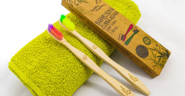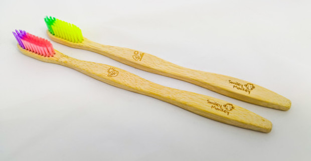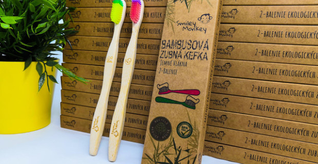 Ekologická bambusová zubná kefka s prémiovými jemnými štetinami od Smiley Monkey, vrátane poštovného.