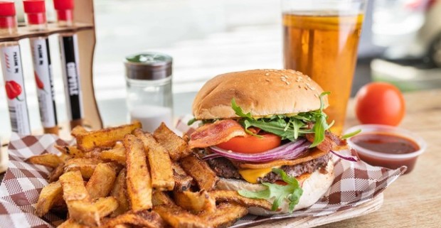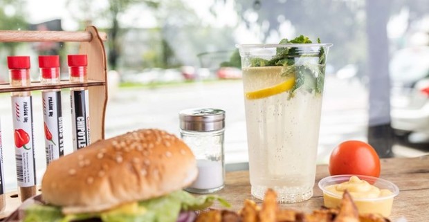 Burger s hranolkami, domácim dresingom a limonádou v Burger Bare…