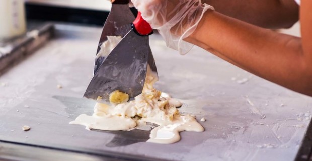 Thajská rolovaná zmrzlina v Sawadí na Kamennom námestí - skutočné…
