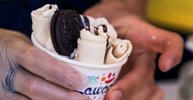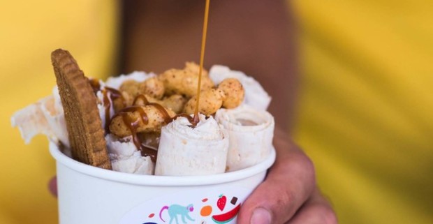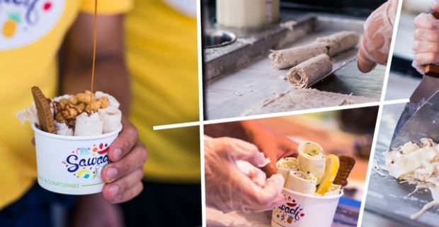 Thajská rolovaná zmrzlina v Sawadí na Kamennom námestí - skutočné prírodné chute a crazy posýpky.