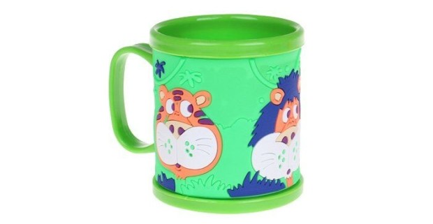 Detský plastový hrnček s veselými motívmi - (zelený so zvieratkami).