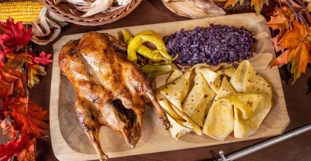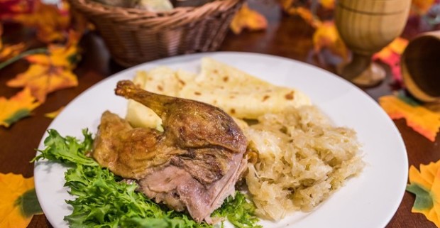 Pečená kačica s dusenoukapustou a lokšami pre 1, 2 aj 4 osoby v reštaurácii Rotoska.