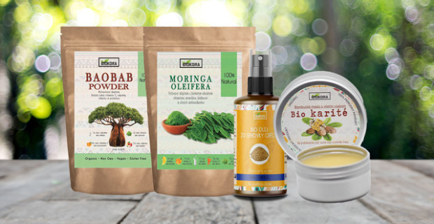 Bambucké maslo, Senovka grécka, BIO Moringový a Baobabový prášok značky Biokora Natural&Organic.