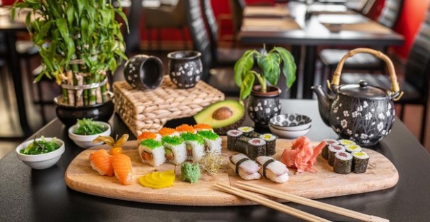 Sushi vo Fugu Sushi s konzumáciou v reštaurácii alebo možnosťou…
