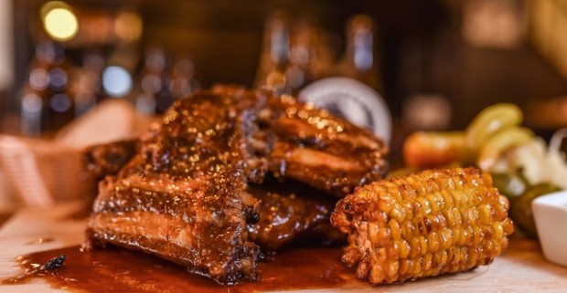 Marinované grilované BBQ rebierka alebo kombo s kilom chilli kuracích krídelok v Pivárničke.