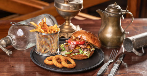 Hamburger v reštaurácii Corleone u Kmotra. Na výber z 3 rôznych burgrov.
