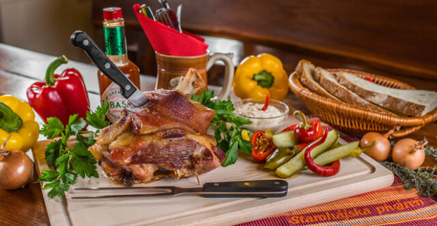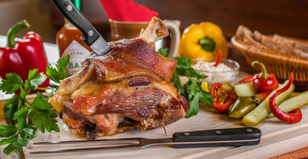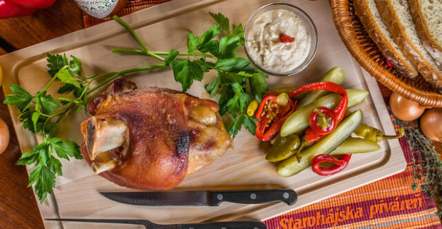 Chrumkavé pečené koleno s prílohou – 1,8 kg pre dvoch v Starohájskej pivárni.