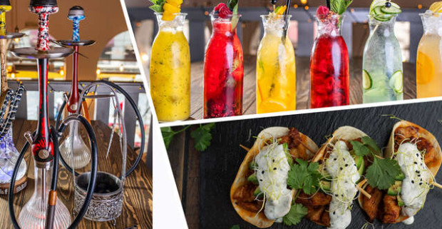 Vodná fajka podávaná v čerstvom ananáse, limonády podľa výberu a tacos taštičky v Le papillon.