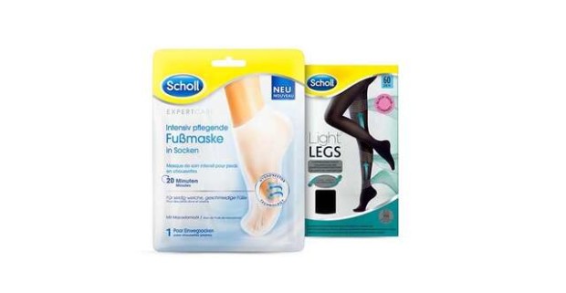 Kompresné pančušky a hydratačná maska na nohy Scholl s makadamovým olejom.