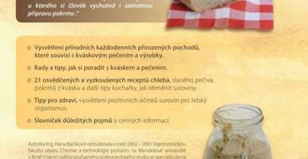 Kniha "Kváskové pečivo slané" s podpisom autorky. Návody na výrobu kvásku.