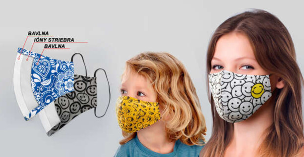 Trojvrstvové rúška s iónmi aktívneho striebra + tvarovateľný pliešok na nose.