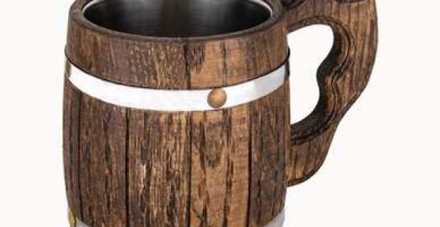 Tradičné ručne robené drevené poháre s nerezovým vnútrom.