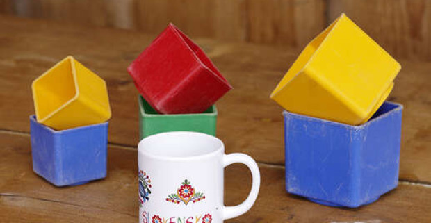 Hrnček espresso s ľudovým motívom, detský plastový hrnček či sada táciek pod poháre s ľudovým motívom.
