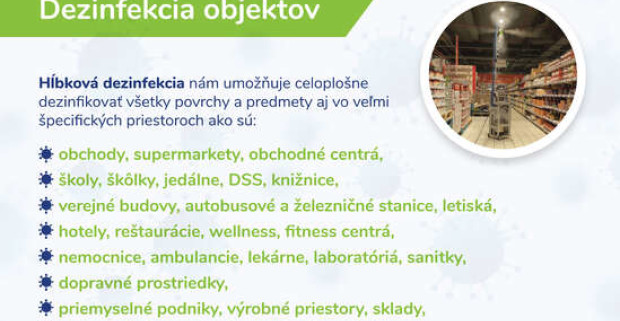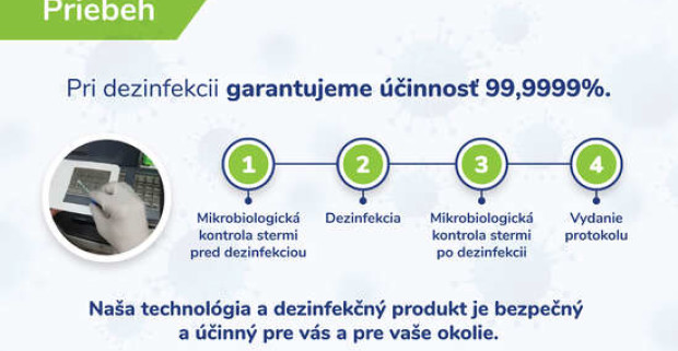 Dezinfekcia priestorov suchou hmlou na báze peroxidu vodíka s pridaním koloidného striebra.