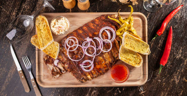 Pečené bravčové rebierka v pikantnej marinádev známom Hacienda & El Diablo v centre Bratislavy.