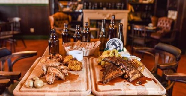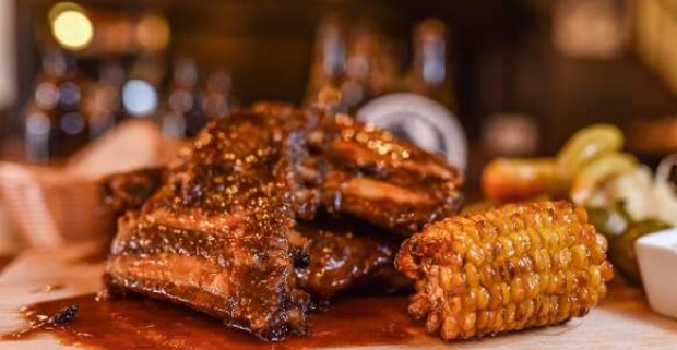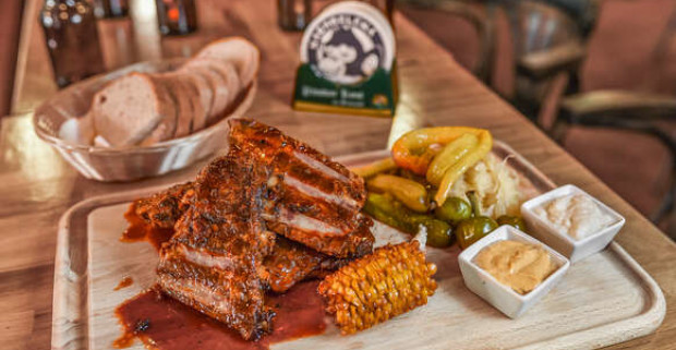 Marinované bravčové rebrá a grilované krídla v petržalskej Pivárničke.