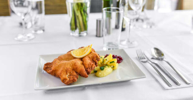 Bratislavský rezeň s petržlenovými zemiakmi na masle bez rezervácie, prípadne s možnosťou take away.