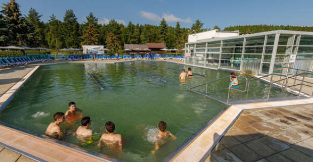 Geotermálna voda sa čerpá z dvoch vrtov z hĺbky 1742 m vrt č. 1 a 2502 m vrt č. 2. Povrchová teplota geotermálnej vody z vrtu č.1 je 56 °C a vrtu č. 2 59 °C. Chemické zloženie geotermálne vody je vápenato-horečnatá, hydrogén-uhličitanová, síranová, teplá, hypotonická. Hodnota celkovej mineralizácie 3,7 - 3,9 g/l pre vrt č. 1 a 3,9 - 4,1 g/l pre vrt č. 2.