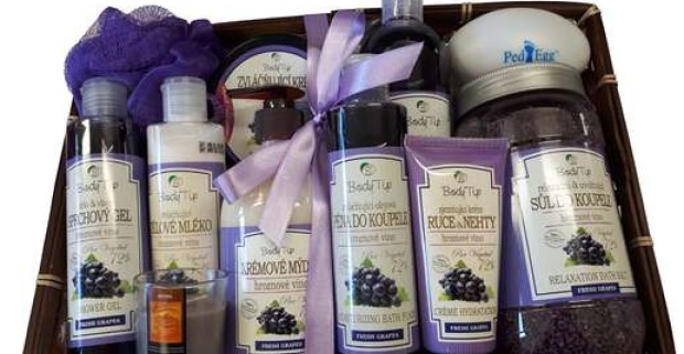 Kozmetický darčekový kôš s výťažkami z konope či hrozna - skvelý darček pre všetkých.