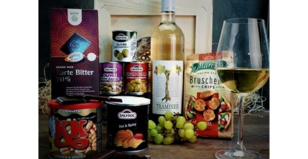 Darčeková debna s bielym vínom Traminer Vineco pre poriadnych chlapov.