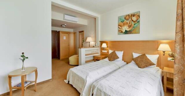 Hotel má 50 komfortných klimatizovaných izieb a apartmánov najvyššej úrovne. Vybavenie izieb: pohovka, LCD televízor Philips, bezplatná čajová sada, minerálna voda, chladnička, stôl, centrálne osvetlenie, individuálne ovládaná klimatizácia, kúpeľňa so sprchovacím kútom, WC, vyhrievaná podlaha, sušič vlasov a hotelová kozmetika. Plocha: 17 - 21 m2 maximálna obsadenosť: 3 osoby