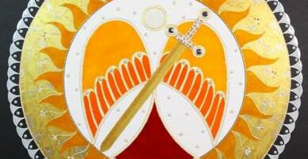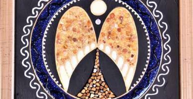 Exkluzívna ručne vytvorená mandala Anjelské krídla so zlatom a drahými kameňmi (1 x 1 m)