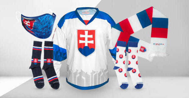 Fanúšikovské balíčky slovenskej reprezentácie. Praktické a originálne ponožky, rúško, šál a dres.