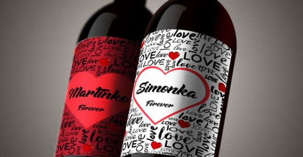 Povedzte to vínom - set valentínskych darčekových vín s vlastnou etiketou.