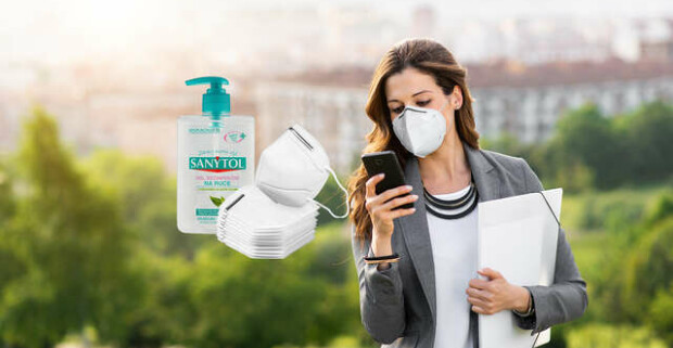 Jednorázové rúška, ochranné masky alebo respirátory + darček: dezinfekcia na ruky Sanytol.
