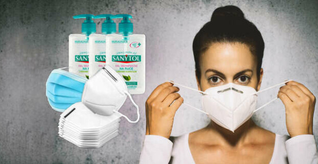 Respirátory FFP2, rúška a masky alebo 2+1 dezinfekcia Sanytol na ruky.