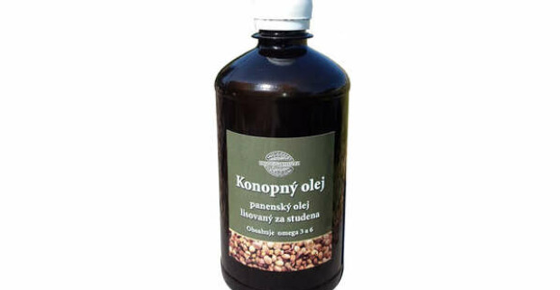 Konopný olej lisovaný za studena.