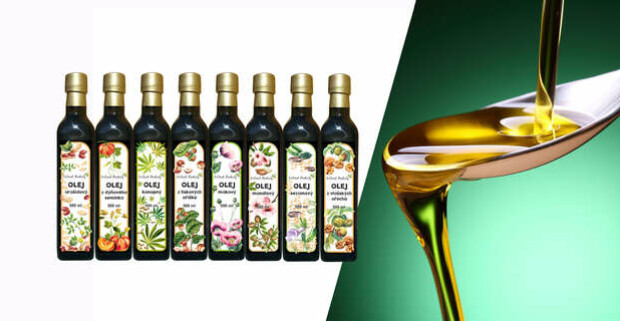 Oleje vyrobené v Čechách - makový, mandľový, tekvicový, sezamový alebo z vlašských orechov.
