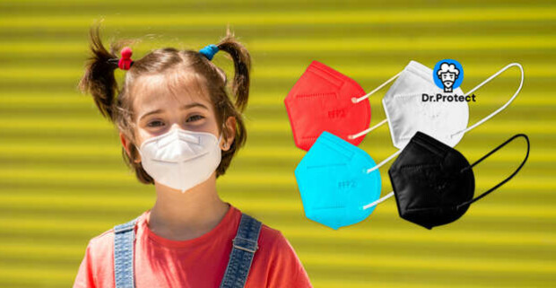 Farebné detské respirátory KN95/FFP2 (biela, čierna, modrá alebo oranžová).