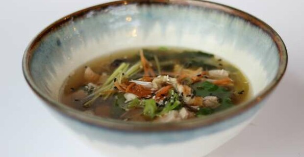Populárna kuracia polievka dochutená rybacou omáčkou, zázvorom, chilli a cesnakom s kvapkou citrónu