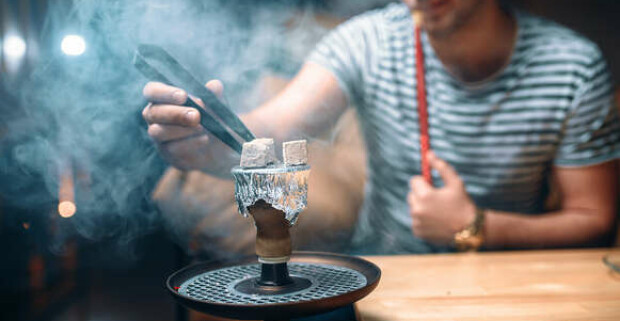 Jemne zatlačte na horiace uhlie nasatím vzduchu pomocou náustku. Mali by ste si rýchlo všimnúť, že sa vnútri sklenenej nádrže zhromažďuje dym.
