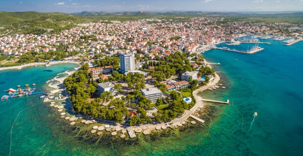 Vodice priamo na pláži v Hoteli Villa Arausana & Antonina **** s bazénom, lehátkami a polpenziou.