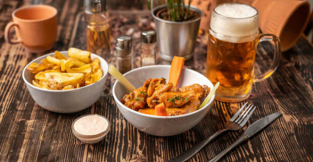 Krídelká s veľkým pivom alebo Kofolou a stolným futbalom v…