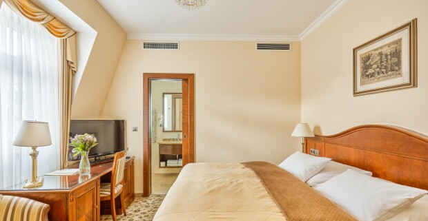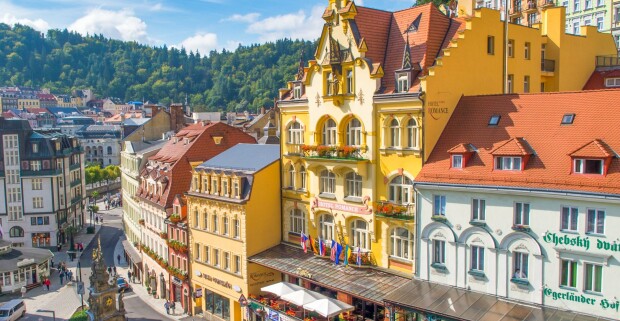 Karlove Vary pri Tržnej kolonáde v Hoteli Romance **** s raňajkami, romantickou večerou a zákuskom.