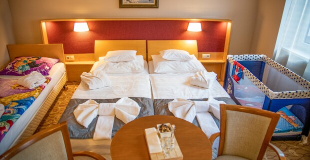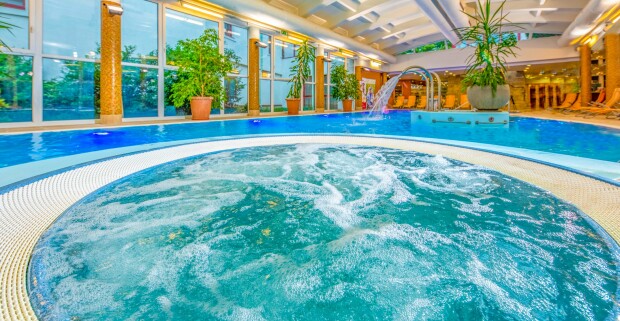 Harkány 350 m od termálov: Dráva Hotel Thermal Resort **** s wellness a saunami + polpenzia.