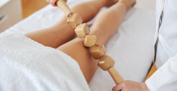 Maderoterapia tváre alebo tela na vypnutie pokožky a zbavenie sa celulitídy.