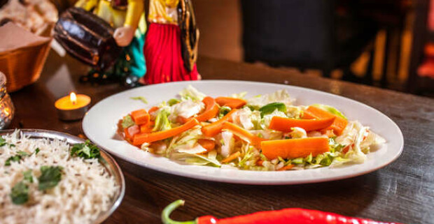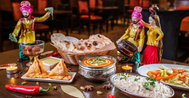 Indické 3-chodové menu v Punjabi Dhaba na Hlbokej ceste, s mäsom alebo vegetariánske.