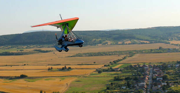 Poznávací let motorovým rogalom ponad Nitru s bezpečného miesta za inštruktorom.