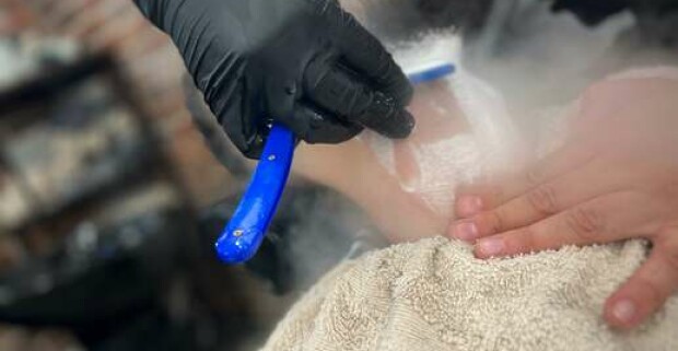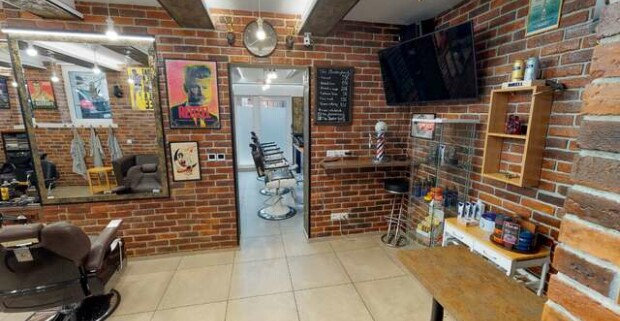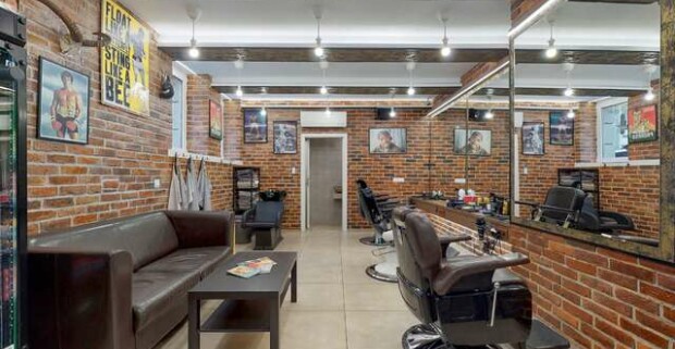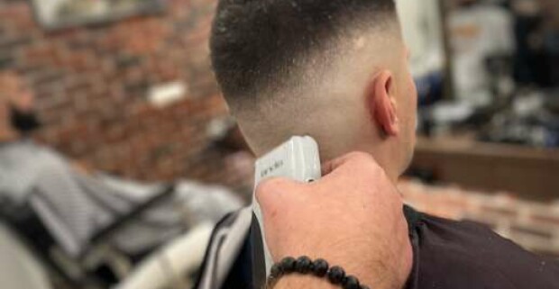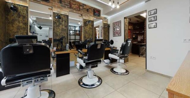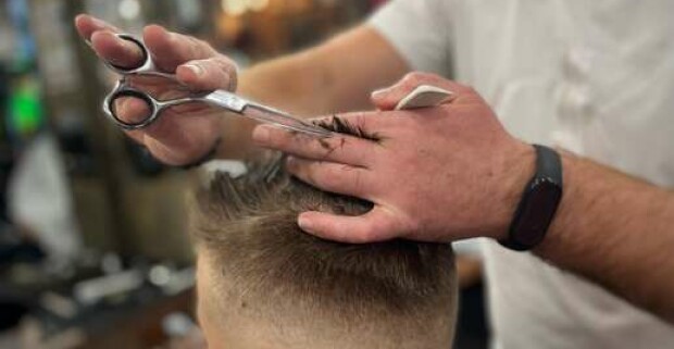 Strih alebo úprava brady v tradičnom men s only holičstve The Barber family.
