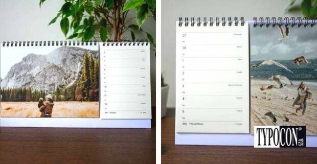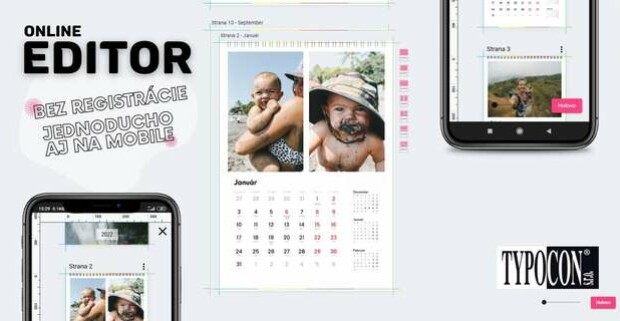 Stolové a nástenné fotokalendáre s vlastnými fotkami od Typocon, online editor pre smartfóny bez nutnosti registrácie.