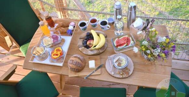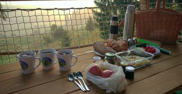 Pobyt v unikátnom domčeku v korunách stromov na Liptove s raňajkami v košíku.